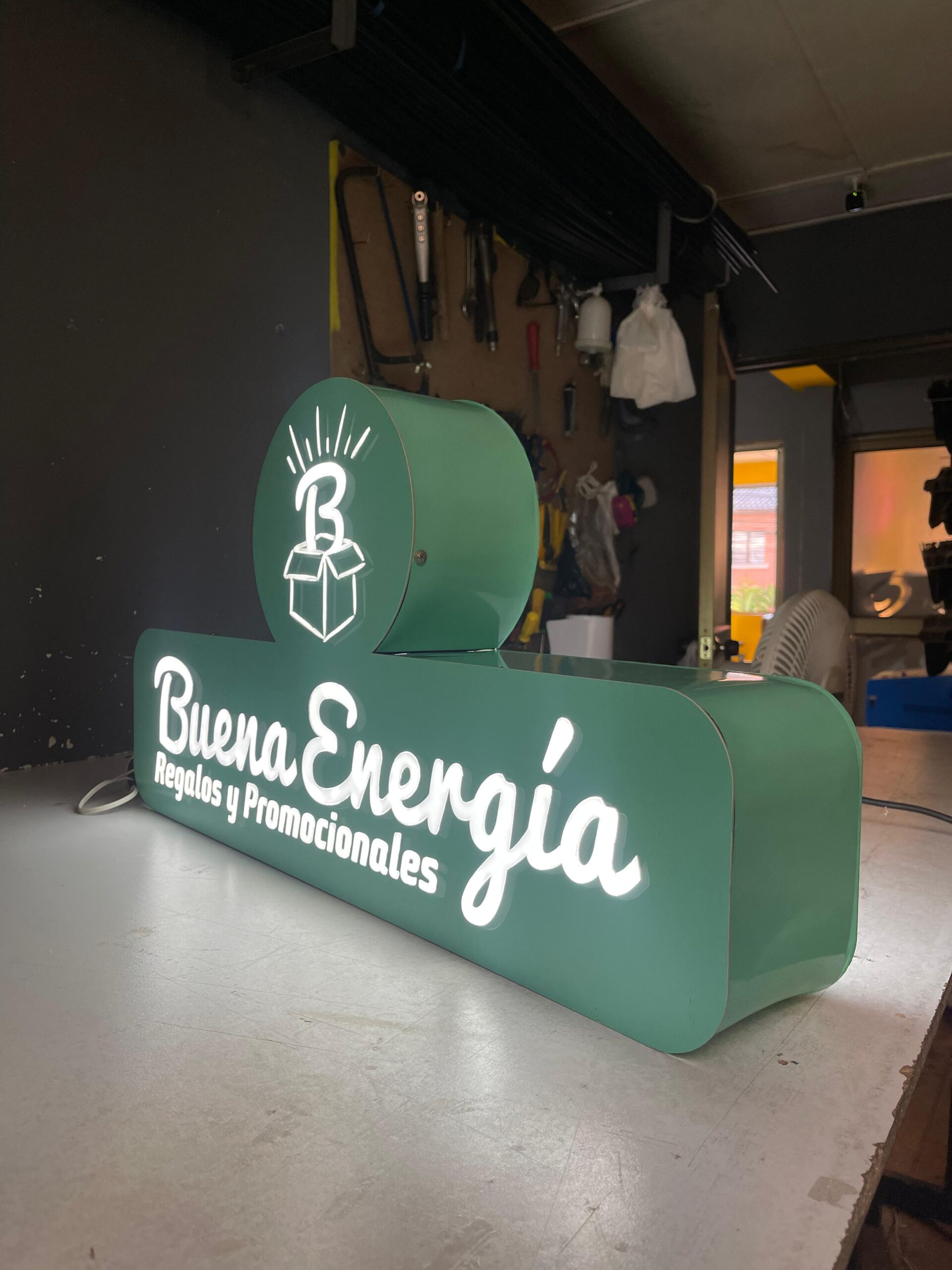 Caja en acrilico con o sin luz interna, con una impresión full color garantizando colores vibrantes y de alta calidad o color acrílico plano,. Además, incorpora letras en acrílico o impresión sobre plástico, cortadas con precisión láser, brindando un acabado elegante y profesional.