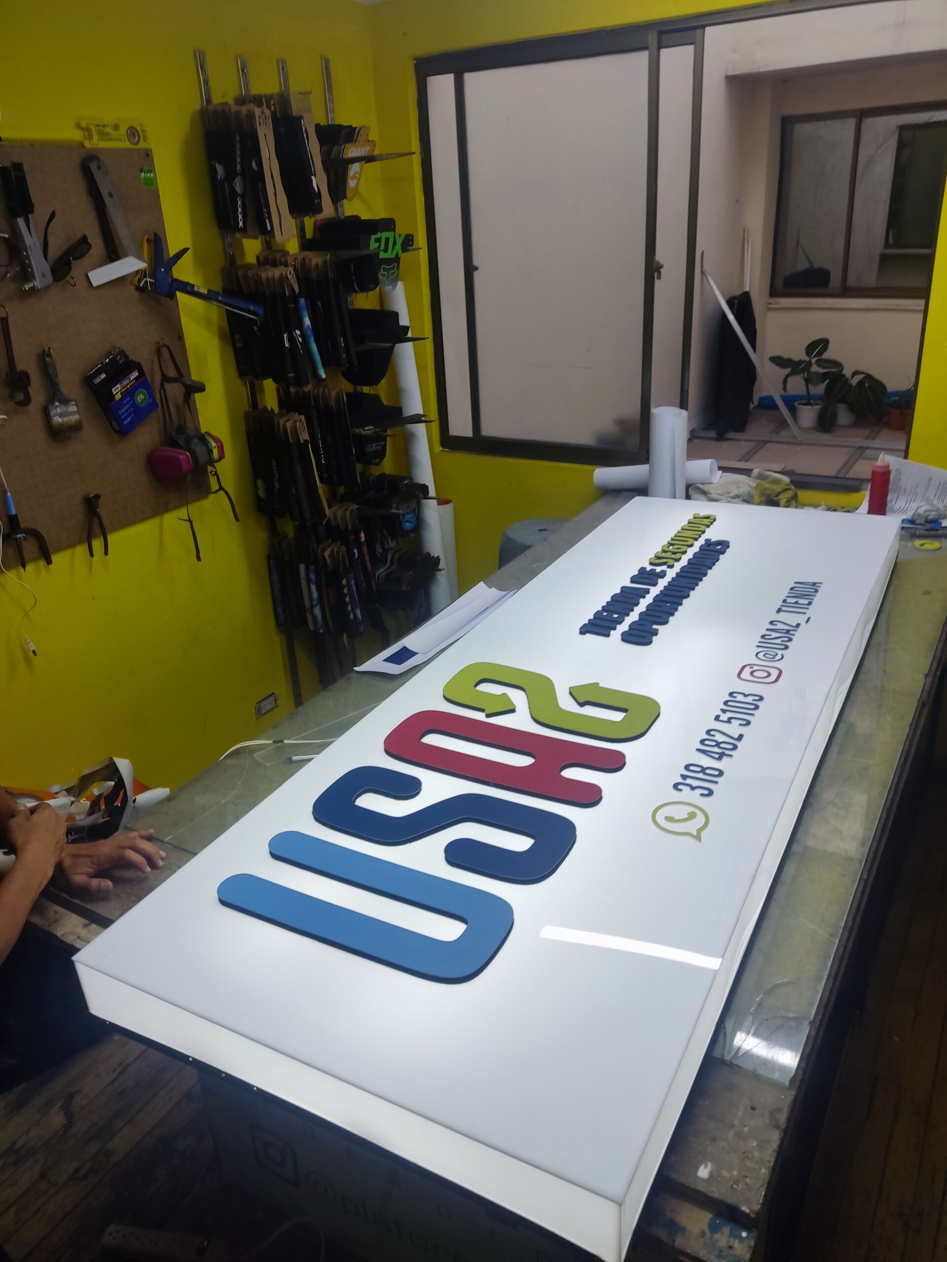 Seguido se agregan letras cortadas en suela espuma, acrílico o poliestireno según la necesidad, no es posible a este segundo volumen adicionar iluminación led.