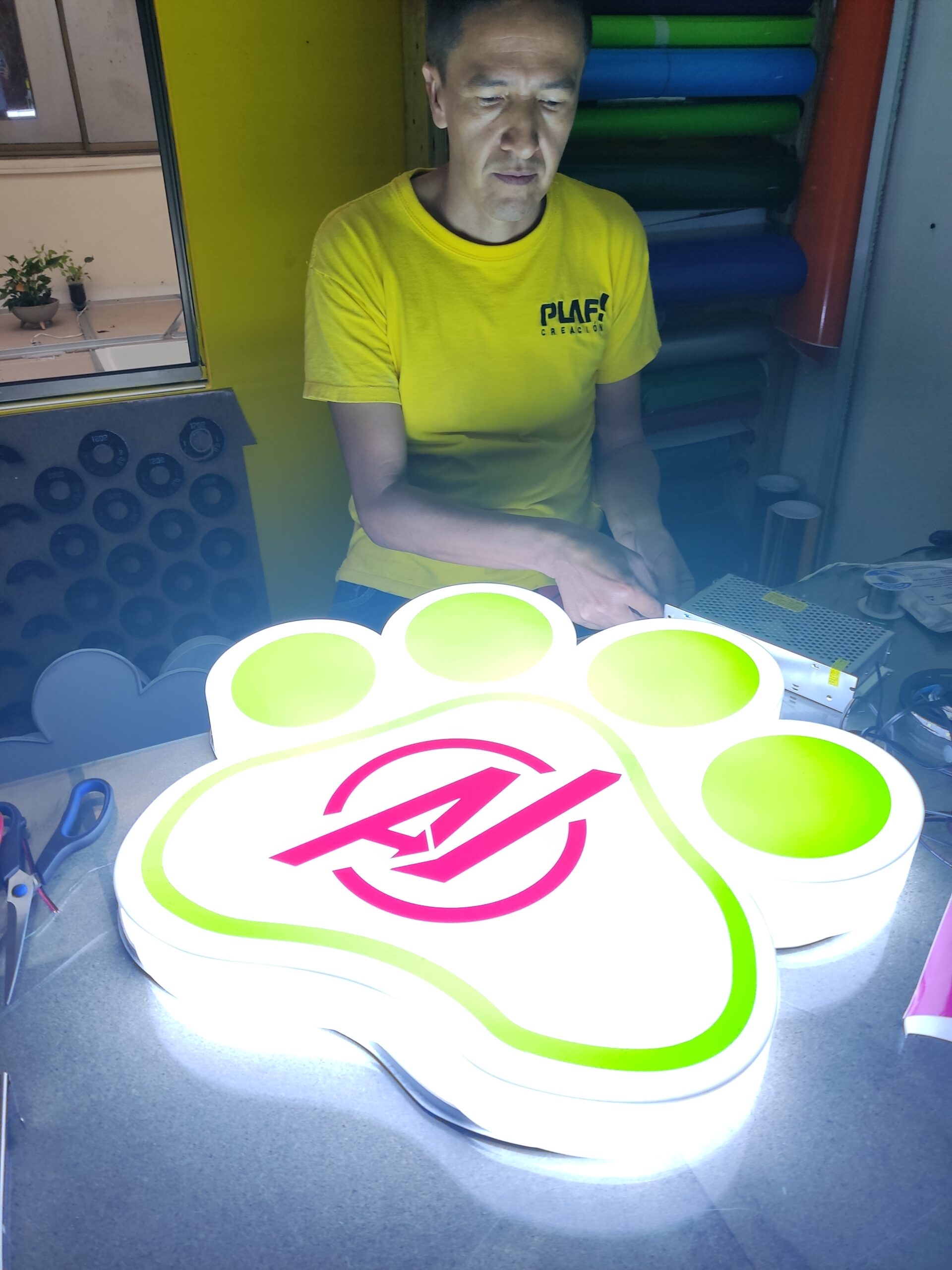 Además, puede incorporar letras en volumen para mayor impacto visual y, si el cliente lo desea, luz interna para resaltar aún más el diseño.”
