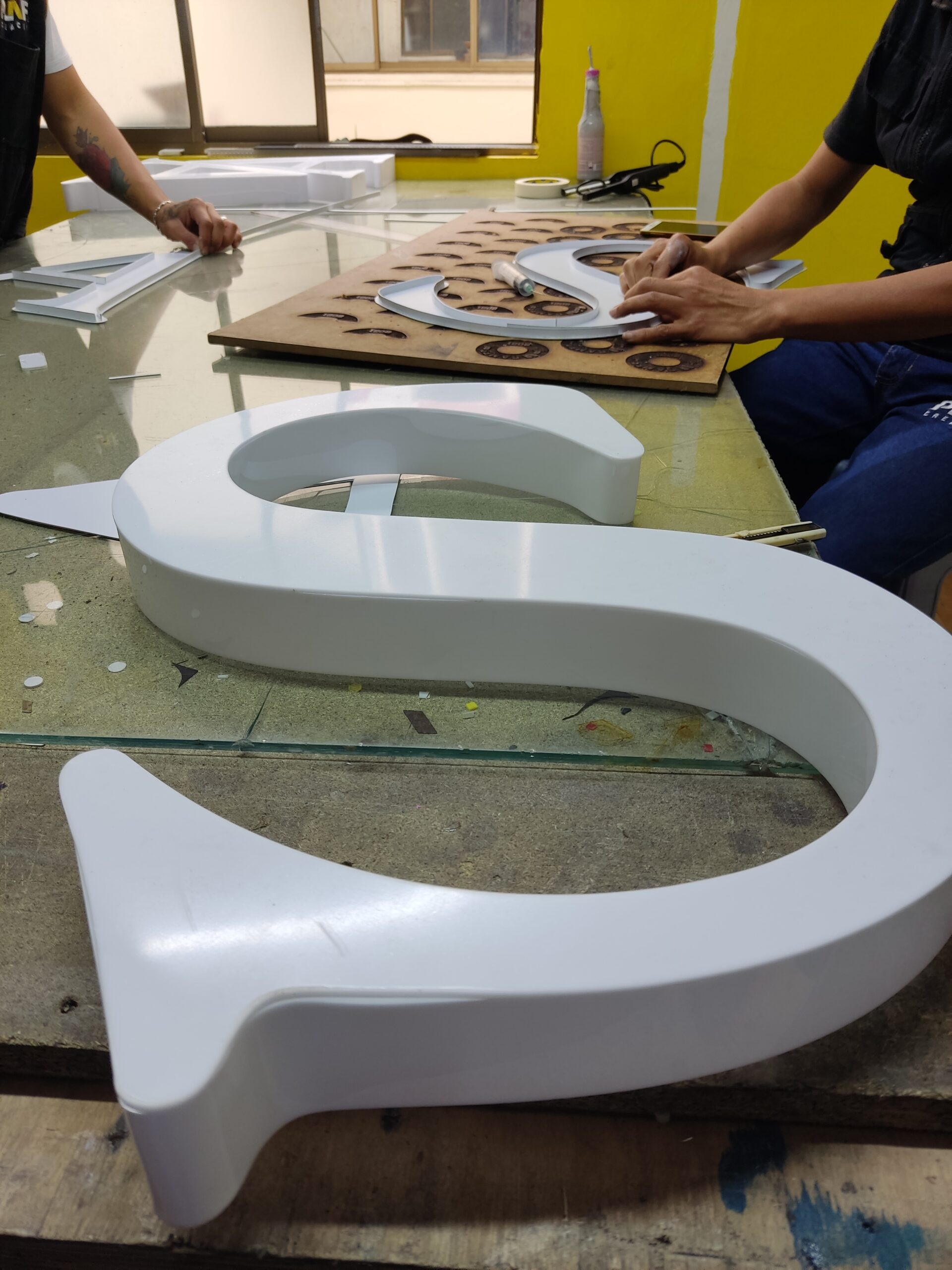Aviso en acrílico con letras o formas en volumen 3D, fabricado con la precisión de la tecnología de corte láser y la impresión digital, complementado con toques artesanales.